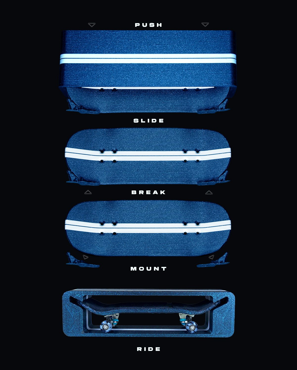 Printed in a single 3D form, it arrives as one solid block you push the board to break it open, remove the supports, sand the edges,apply little heat (150º recommended ) to smooth the sanded part, and bring it to life.